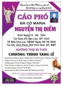Xin Quý Chị Em và Cộng đoàn hiệp thông cầu nguyện cho linh hồn Bà Cố MARIA được sớm hưởng Nhan Thánh Chúa. Cùng nguyện xin Thiên Chúa ban ơn an ủi, nâng đỡ gia đình chị Maria Linh trong biến cố đau thương này.