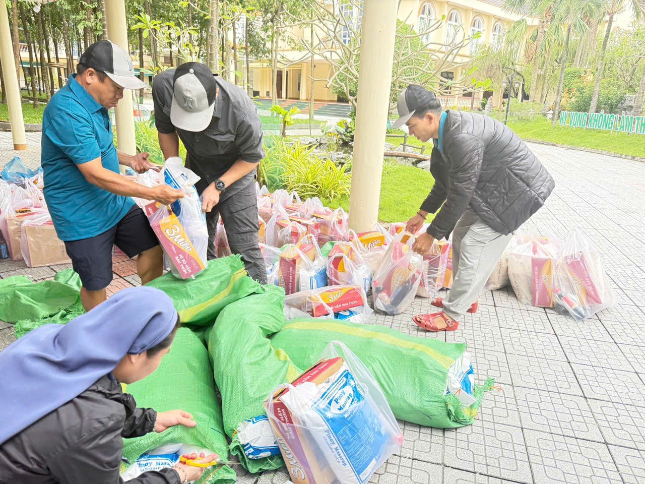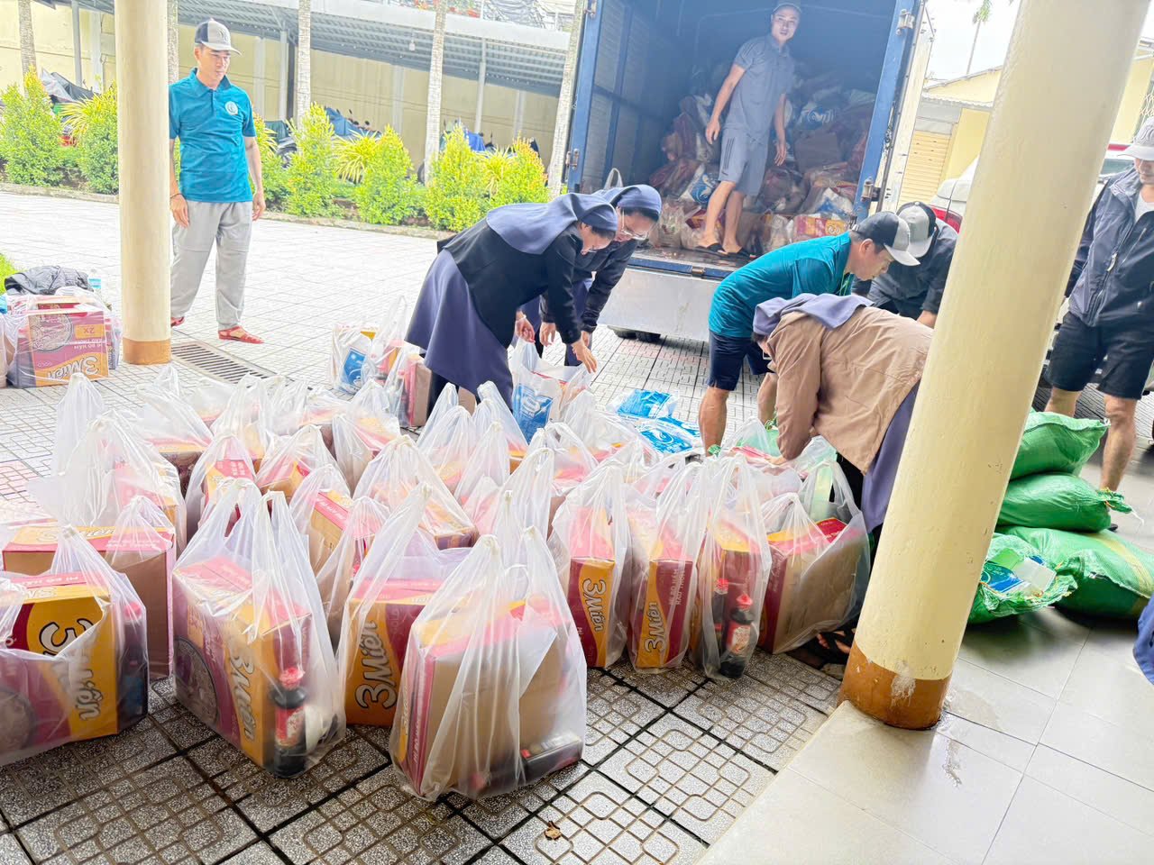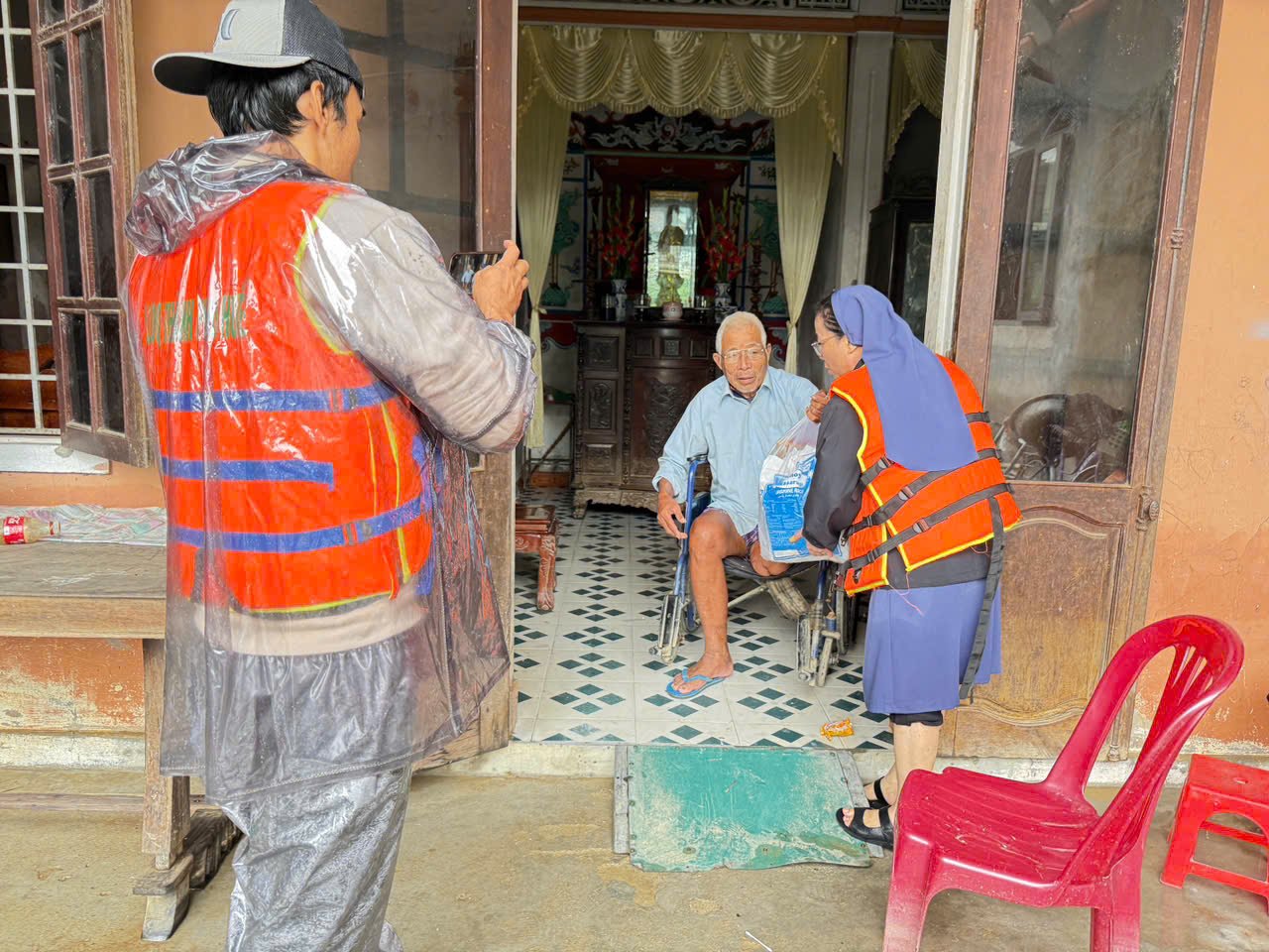 Ngày hôm qua, nước trên các đường còn lớn nên xe vận chuyển đã bị chết máy gây chậm trễ cho việc thăm viếng của quý chị. Nhưng trong tinh thần tương trợ lẫn nhau, quý chị cùng anh chị em trong Hiệp hội vẫn không nao núng.