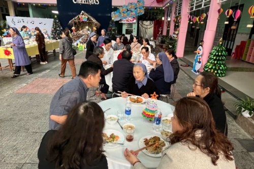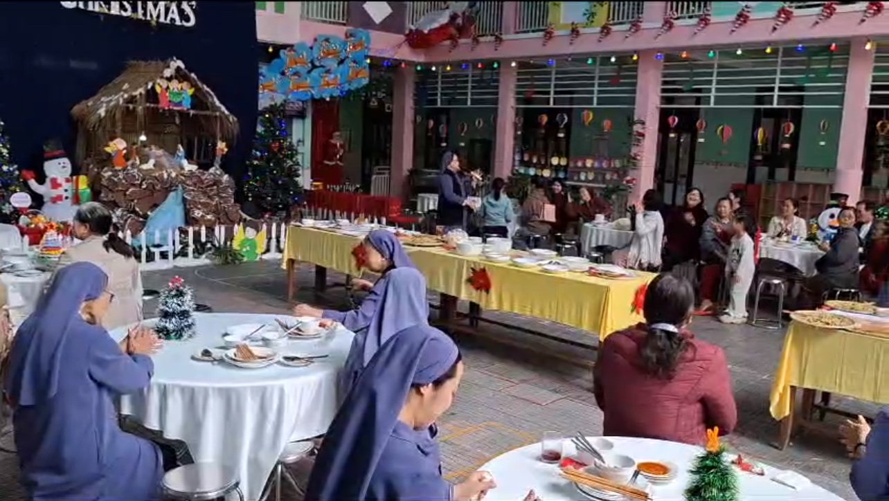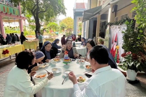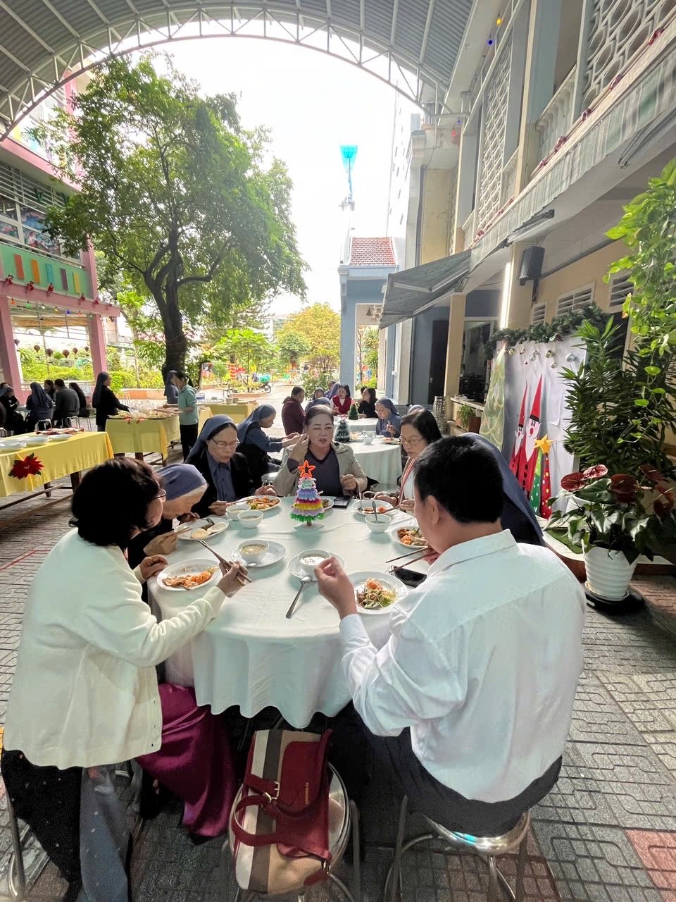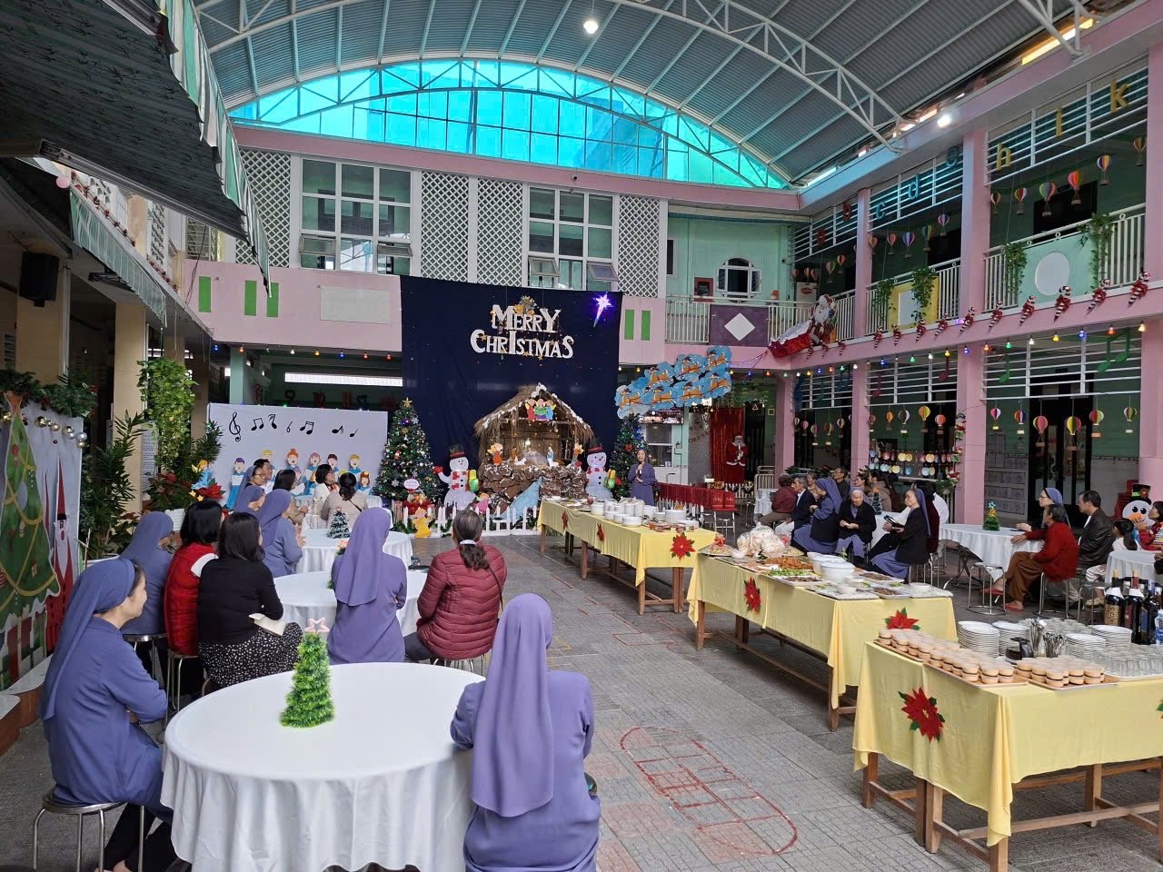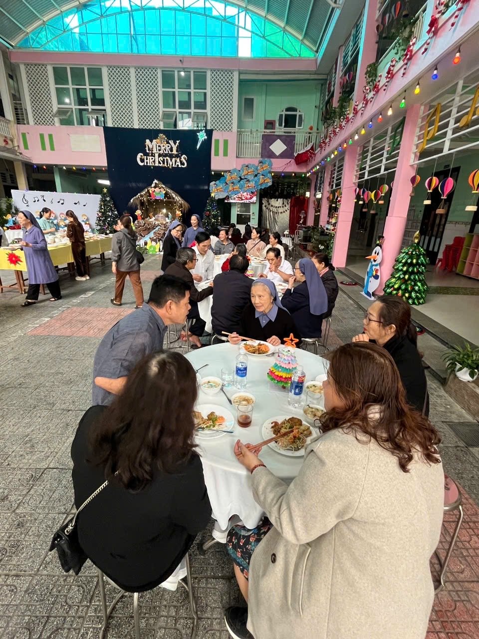 Chị em và khách mời đã chung chia niềm vui mừng Sinh Nhật Chúa Giêsu qua sự tiếp đón, những câu chuyện ôn lại kỉ niềm xưa, những lời hỏi thăm sức khoẻ và cập nhật về cuộc sống của nhau, qua bữa buffet trưa và chương trình ca hát đố vui bộc phát… Không gian nhỏ bé nhưng hội tụ sự đa dạng của khách mới về tuổi tác, nghề nghiệp và sở thích… Họ là người bán hàng ở chợ, người sửa xe đạp, người đánh bóng đồ đồng, là giáo viên, cựu giáo viên, y tá, bác sĩ, dược sĩ, người làm nông, người an hưởng tuổi hưu… Tất cả hoà quyện trong niềm vui gặp lại và nối kết, để cảm nhận trong tình yêu và công trình sáng tạo của Thiên Chúa, tất cả chúng ta là anh chị em của nhau.