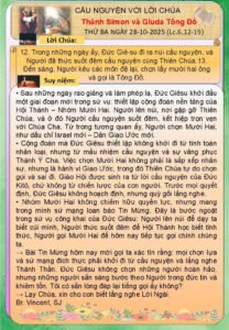 Lời Chúa Cầu Nguyện Với Lời Chúa – Thứ Ba sau Chúa Nhật XXX Thường Niên 27/10/202531/10/2025 Br. Vincent, SJ Chia sẻ mục này: Facebook Linkedin Pinterest Gmail