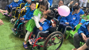 Khi hai bàn tay ấy gặp nhau, tôi cảm giác như mình vừa chứng kiến sự chạm của hai thế giới khác nhau. Trẻ thơ vốn hồn nhiên, các con không biết phân biệt đầy đủ hay thiếu hụt, không biết so sánh hay ngại ngần như người lớn. Các con chỉ đơn giản thấy một bạn nhỏ đang đưa tay ra, và thế là các con đưa tay ra đáp lại. Nhưng chính sự đơn giản ấy lại khiến tôi xúc động đến nghẹn lời.