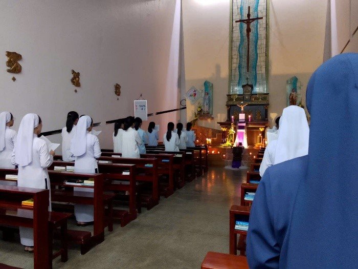 Ngoài kia, mưa gió vẫn không ngừng. Có những chị em ở các cộng đoàn khác đã lên đường cứu trợ, băng qua những con đường lầy lội để trao gửi yêu thương cho người nghèo khổ. Còn nơi đây – các chị em vẫn kiên trì canh thức trong lời kinh. Một người đi, một người ở; một người hành động, một người cầu nguyện – hai nhịp đập của cùng một con tim Mến Thánh Giá.