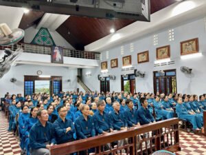 Khép lại ngày Hành Hương là bữa cơm huynh đệ với tình thương mến thương, Anh chị em cùng nhau ăn trưa và trò chuyện sum vầy. Sau giờ cơm mọi người chào nhau ra về mang theo trong mình ơn bình an và niềm vui của ơn Năm Thánh, với sự quyết tâm đổi mới tâm hồn, cố gắng sống thánh thiện và làm chứng cho tình yêu Thập Giá!
