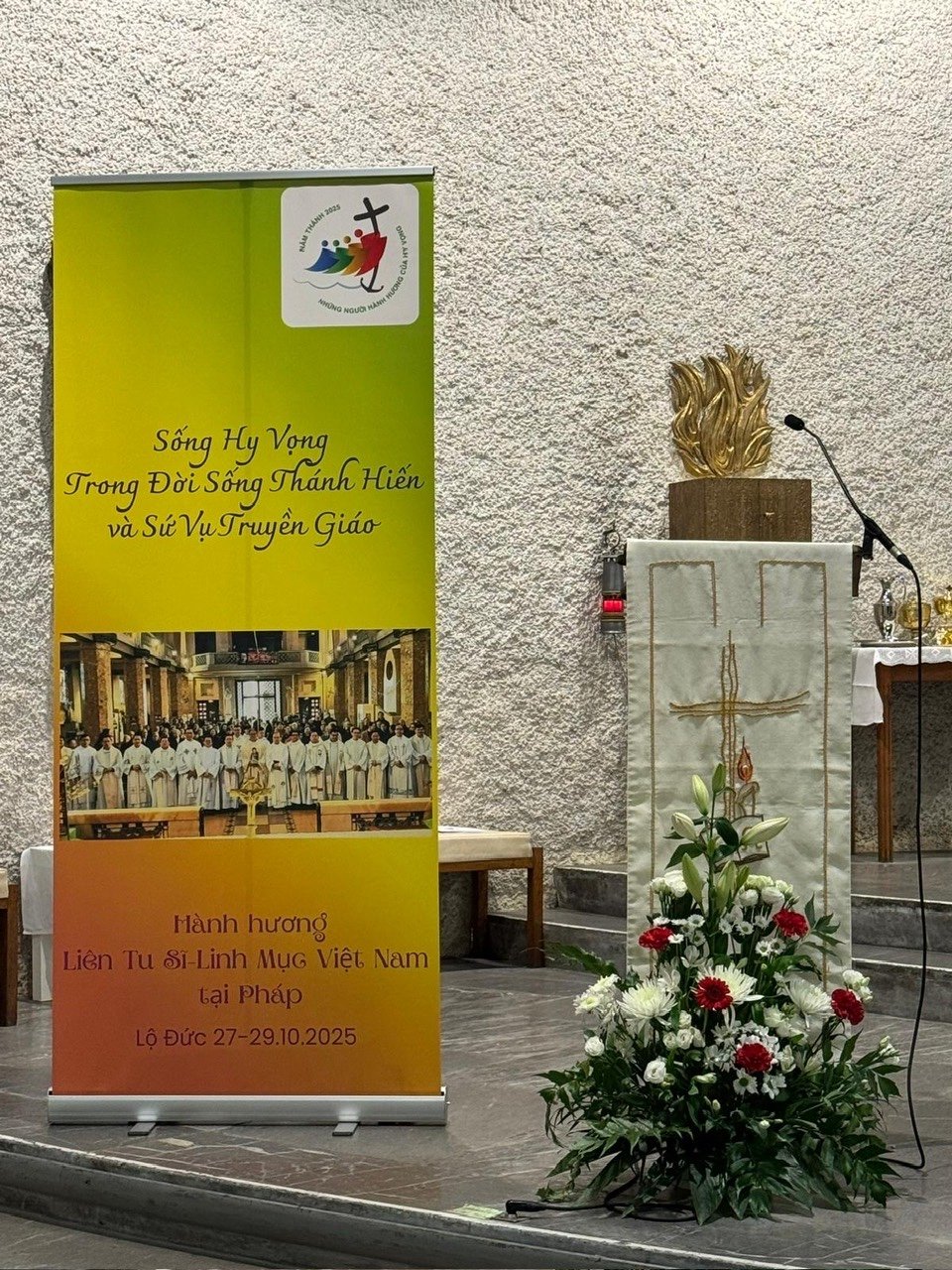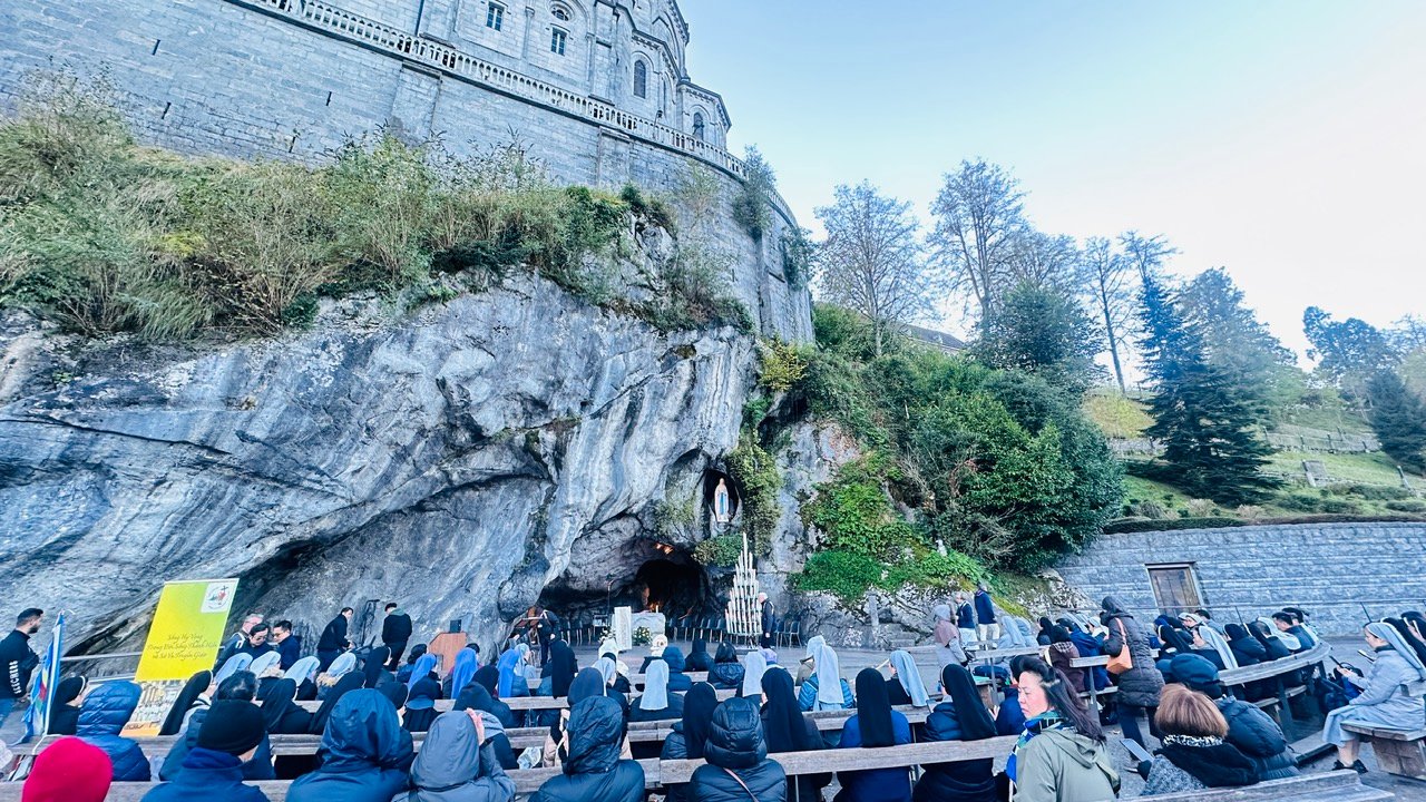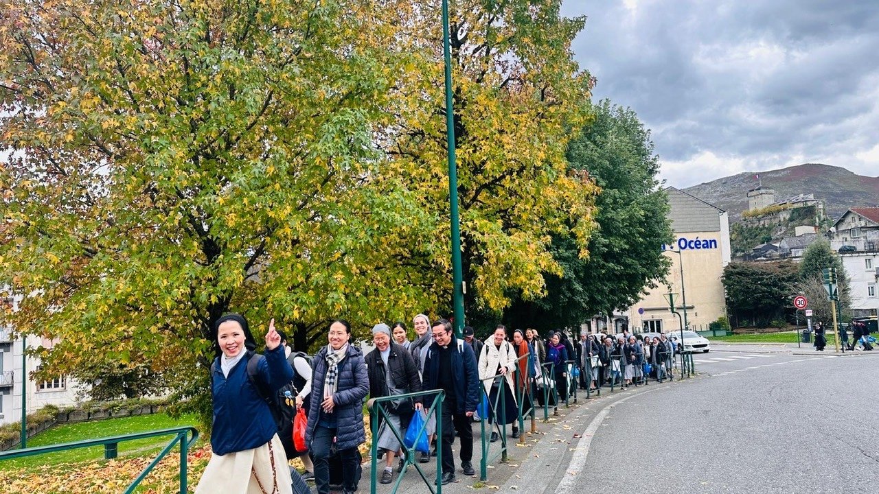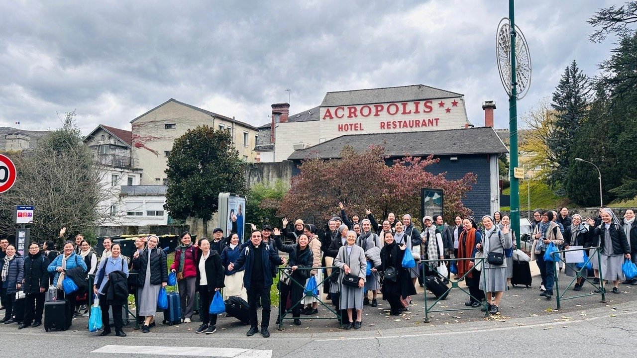 Cùng với các anh chị em trong đại gia đình Liên tu sĩ – Linh Mục Việt Nam tại Pháp, một số chị em Mến Thánh Giá Huế tại Pháp được về bên Mẹ Lộ Đức (Lourdes) từ 27-29/10/2025. Đây là một trong những kỳ hành hương quy tụ đông đảo anh chị em Linh muc, tu sĩ nam nữ Việt Nam trên toàn nước Pháp (97 người), với sự chia sẻ của Đức Cha Eric de Moulin Beaufort, nguyên Chủ tịch Hội Đồng Giám Mục Pháp, và cha Tô-ma Nguyễn Đình Anh Nhuệ, đến từ Rôma.