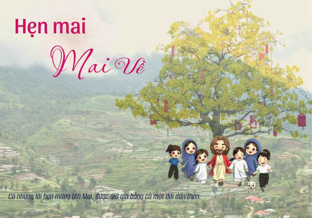 Mai đứng lặng trước hiên nhà nguyện nhỏ. Chiều cuối năm, gió từ triền núi thổi về mang theo cái se lạnh rất riêng của vùng truyền giáo. Ngoài sân, mấy em bé đang líu ríu treo những dải giấy màu đỏ lên cành mai rừng. Có em vụng về làm rơi sợi dây, lại cười khúc khích khi Mai cúi xuống giúp.