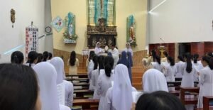 Mừng lễ Bổn mạng của Trường Mầm non Hoa Hồng hôm nay, chị em cùng quý cô giáo dâng lời tạ ơn Thiên Chúa vì đã thương gìn giữ mái trường Mầm non Hoa Hồng qua sự bảo trợ của các Thiên Thần. Trong môi trường giáo dục mầm non, các em nhỏ như những nụ hoa non tươi đang cần được chăm sóc, vun trồng và bảo vệ. Sứ mạng cao quý ấy được trao cho quý Sơ, quý cô giáo, và được nâng đỡ bởi sự cộng tác của quý phụ huynh. Chính trong trách nhiệm chung này, mọi người được mời gọi trở thành khí cụ bình an và tình thương của Chúa cho các cháu. Chúng ta cùng cầu xin cho quý Sơ và quý cô giáo luôn có trái tim hiền mẫu, kiên nhẫn, sáng tạo và yêu thương để dạy dỗ trẻ thơ không chỉ bằng kiến thức, mà còn bằng gương sáng đức tin và nhân cách. Xin Chúa chúc lành cho quý phụ huynh biết đồng hành và cộng tác, để việc giáo dục con trẻ trở thành công việc chung của gia đình và nhà trường trong tinh thần yêu thương và trách nhiệm. Và xin cho các cháu của trường luôn được các Thiên Thần hộ thủ chở che, lớn lên trong bình an, ngoan ngoãn, khỏe mạnh và ngày càng trở thành niềm vui cho gia đình và Giáo Hội.