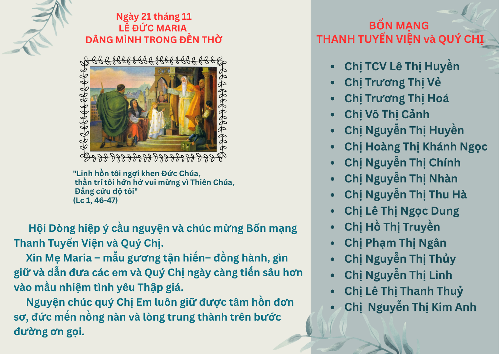 Cầu NguyệnSự Kiện Mừng Lễ Đức Maria Dâng Mình Trong Đền Thờ (21/11) 21/11/202521/11/2025 Chia sẻ mục này: Facebook Linkedin Pinterest Gmail