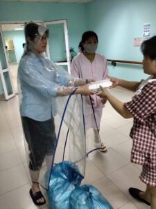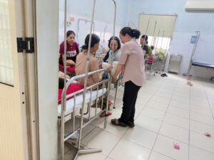 Không chỉ ở các thôn làng ngập sâu, qúy chị còn tìm đến những bệnh viện, nơi nhiều bệnh nhân và thân nhân đang bị kẹt lại vì mưa lũ. Những gói quà nhỏ được trao tận tay, những lời cầu nguyện được thì thầm bên giường bệnh. Có chị nói: “Khi nắm tay một bệnh nhân run rẩy, em thấy như đang nắm tay chính Đức Kitô đang đau khổ trong họ.”