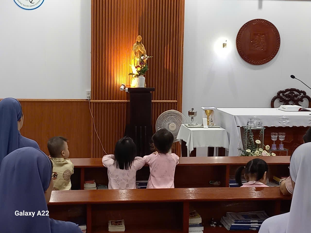 Bên cạnh những vất vả, mái ấm vẫn luôn tràn đầy niềm vui. Mỗi ngày sống thường bắt đầu bằng tiếng cười và sự ấm áp rất riêng. Những tâm hồn nhỏ còn ngái ngủ, ngồi ngay ngắn dễ thương trong Thánh lễ sáng. Tiếng hát, tiếng đọc kinh râm ran, nhiều cung giọng khác nhau hòa quyện lại, mộc mạc nhưng chân thành. Em tin Chúa đang mỉm cười vì đó là của lễ đẹp lòng Chúa hơn bao giờ hết.