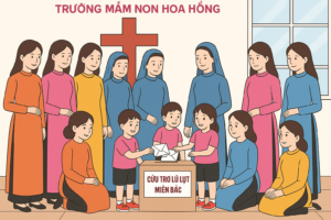 Trong tinh thần hiệp thông và chia sẻ, quý Sơ, quý Cô giáo và quý Phụ huynh Trường Mầm non Hoa Hồng – thuộc Hội Dòng Mến Thánh Giá Huế đã cùng chung tay hướng về đồng bào miền Bắc đang chịu ảnh hưởng nặng nề bởi bão lũ.