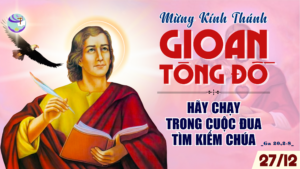Hôm nay chúng ta cùng với Giáo Hội mừng kính lễ Thánh Gioan Tông Đồ, tác giả sách Tin Mừng. Theo truyền thống, thánh nhân là vị tông đồ trẻ nhất trong số các tông đồ. Thánh nhân được Chúa Giêsu gọi theo Ngài trên bờ sông Giođan trong những ngày đầu tiên của sứ vụ. Thánh nhân là một trong những môn đệ được tuyển chọn để hiện diện khi Chúa Giêsu biến hình và trong vườn cây dầu. Trong Bữa Tiệc Ly, thánh nhân tựa đầu vào ngực Chúa Giêsu và trong giờ khổ nạn của Chúa Giêsu, khi các môn đệ khác bỏ chạy, bán hoặc chối Thầy mình, Thánh Gioan tiếp tục đứng bên cạnh Thầy, và cuối cùng đứng kề bên Mẹ Maria dưới chân thập tự. Những chi tiết này cho thấy thánh nhân là một người môn đệ trung thành với Thầy trong giây phút hạnh phúc cũng như đau buồn. Thánh nhân không bao giờ rời xa Thầy của mình. Học gương sáng của thánh nhân, chúng ta cũng được mời gọi trung thành với Chúa trong mọi giây phút của cuộc sống.
