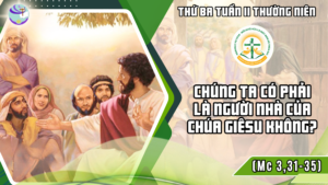 Ai trong chúng ta cũng có một gia đình và những người thân trong gia đình. Tiêu chuẩn để xác định chính là tính huyết thống. Trong bài Tin Mừng hôm nay, Chúa Giêsu đưa ra một tiêu chuẩn mới để xác định ai thuộc về gia đình của Thiên Chúa. Chúng ta thử xem mình có thuộc gia đình của Ngài không? Những người Thánh Máccô đề cập trong bài Tin Mừng là những người thuộc ‘máu huyết’ của Chúa Giêsu: “Khi ấy, mẹ và anh em Đức Giêsu đến, đứng ở ngoài, cho mời Người ra” (Mc 3:31). Nhóm này cũng chính là nhóm được đề cập đến trong 3:21 – “Thân nhân của Người hay tin ấy, liền đi bắt Người, vì họ nói rằng Người đã mất trí.” Còn trong bối cảnh của trình thuật hôm nay, chúng ta không biết lý do họ đến tìm Chúa Giêsu. Dù có lý do gì, chúng ta thấy tình máu mủ lúc nào cũng quan tâm chăm sóc cho nhau. Đây chính là tiêu chuẩn mà không chỉ những người Do Thái, nhưng tất cả mọi dân tộc xem là tiêu chuẩn cần thiết để cho biết một người thuộc về gia đình mình hay không.