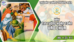 Hình ảnh đáng để chúng ta suy gẫm là hình ảnh Chúa Giêsu vẫn an tâm ngủ trong khi các môn đệ vất vả chèo chống với trận cuồng phong. Khả năng ngủ của Chúa Giêsu ở đàng lái giữa sóng biển xô dập dồn chỉ cho chúng ta thấy thái độ hoàn toàn tín thác vào Thiên Chúa. Điều này mời gọi chúng ta hoàn toàn tin tưởng vào Thiên Chúa giữa biển đời nhiều khó khăn và thử thách. Giống như các môn đệ, chúng ta cũng hoảng sợ và kêu lên: “Thầy ơi, chúng ta chết mất, Thầy chẳng lo gì sao?” (4:39) khi đối diện với những sóng gió trong cuộc sống. Chúng ta nghĩ Chúa không lo lắng gì cho chúng ta. Nhưng chúng ta cần biết rằng nhiều khi Chúa ‘chưa’ làm gì, chứ không phải ‘không’ làm gì. Ngài muốn chúng ta hoàn toàn tín thác vào Ngài giữa sóng gió cuộc đời vì chính Ngài là Người đang nắm giữ vận mệnh của hành trình. Chúng ta có sẵn sàng tín thác để Ngài hướng dẫn hành trình của chúng ta không?
