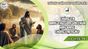 Thánh Luca tiếp tục đào sâu chân tính của Chúa Giêsu qua việc sử dụng những biểu tượng về sự giàu sang như lâu đài, của cải, sự tin tưởng vào sự an toàn của vật chất để mô tả một người mạnh mẽ (x. Lc 3:21-22). Nhưng Chúa Giêsu là Đấng mạnh hơn những người cậy dựa vào sức mạnh của vật chất (x. Lc 3:16). Ngài là Đấng sẽ đánh bại các quyền lực của sự dữ. Ngài sẽ ban quyền lực này cho những ai theo Ngài, những người đi với Ngài và cùng thu góp với Ngài: “Ai không đi với tôi là chống lại tôi, và ai không cùng tôi thu góp là phân tán” (Lc 11:23). Qua những lời này, Thánh Luca nói về đề tài ơn gọi của người môn đệ. Khi sống trong môi trường chống đối, các môn đệ Chúa Giêsu được an ủi bởi quyền năng của Chúa Giêsu trên các mãnh lực sự dữ và họ được mời gọi để tiếp tục trung thành với Ngài và lối sống của Ngài. Nói cách cụ thể, họ được mời gọi đi theo con đường yêu thương Ngài đã đi và trở thành những nhân tố của sự hiệp nhất. Chúng ta đang đi trên con đường yêu thương và đang là nhân tố của hiệp nhất trong môi trường chúng ta đang sống không?