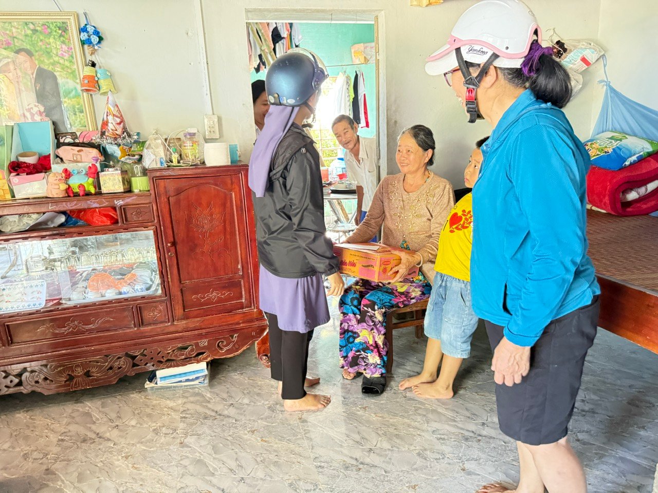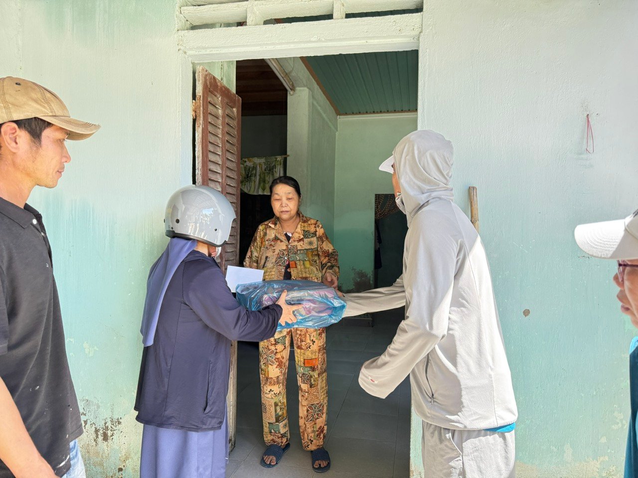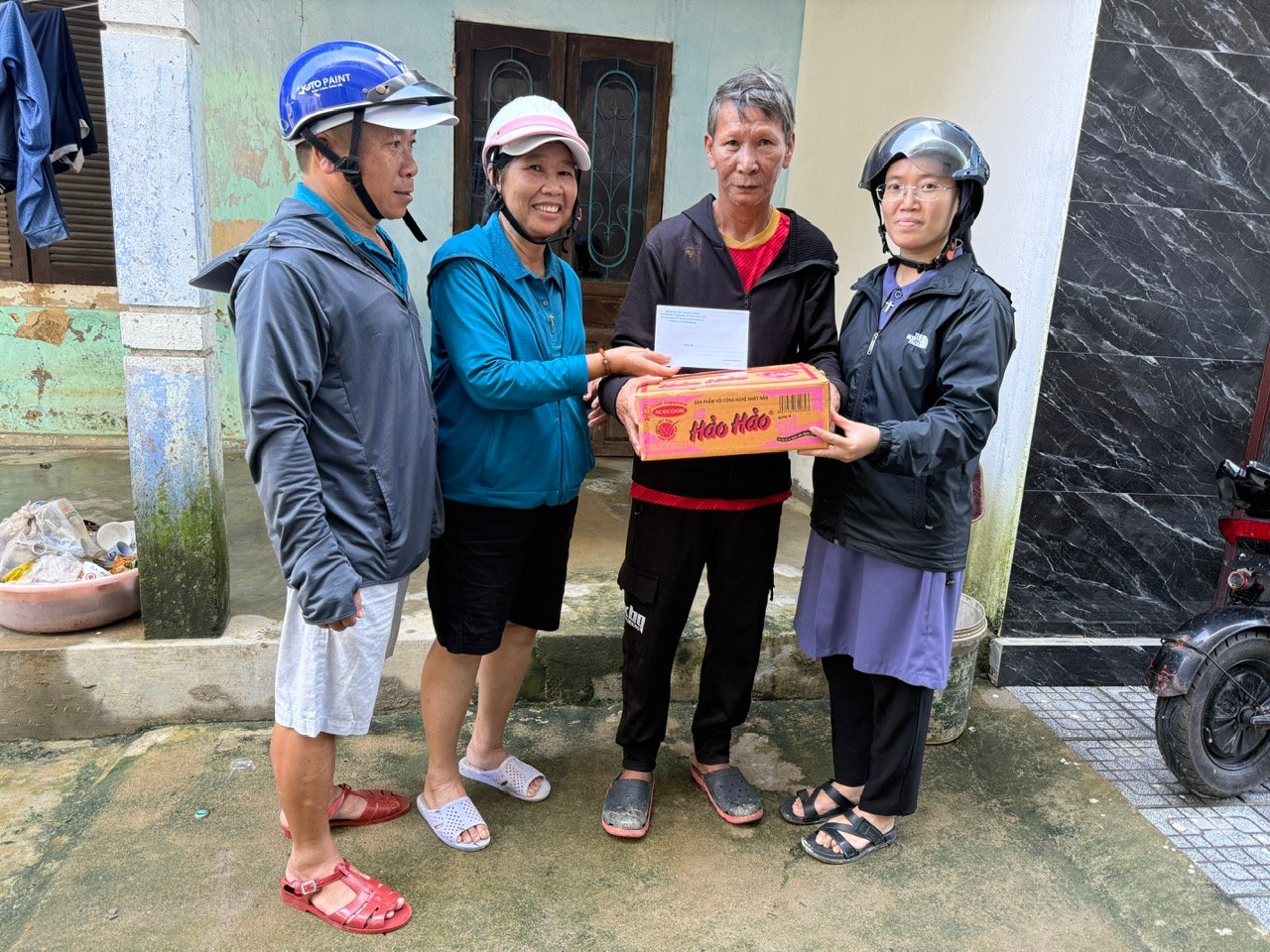 Nước đang rút dần ở những vùng trũng, và giao thông đã được lưu thông dễ dàng hơn. Chị em Mến Thánh Giá Huế cùng anh chị em Hiệp hội đã nhanh chóng đến với bà con ở Hương Sơ để chia sẻ và thăm hỏi họ. Trong chuyến đi này, quý chị đã thăm viếng các ông bà cao tuổi, những người neo đơn và bệnh tật.