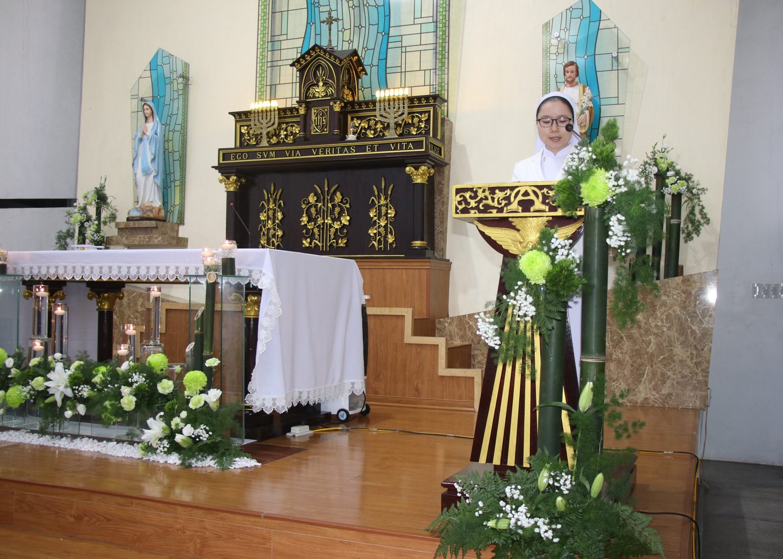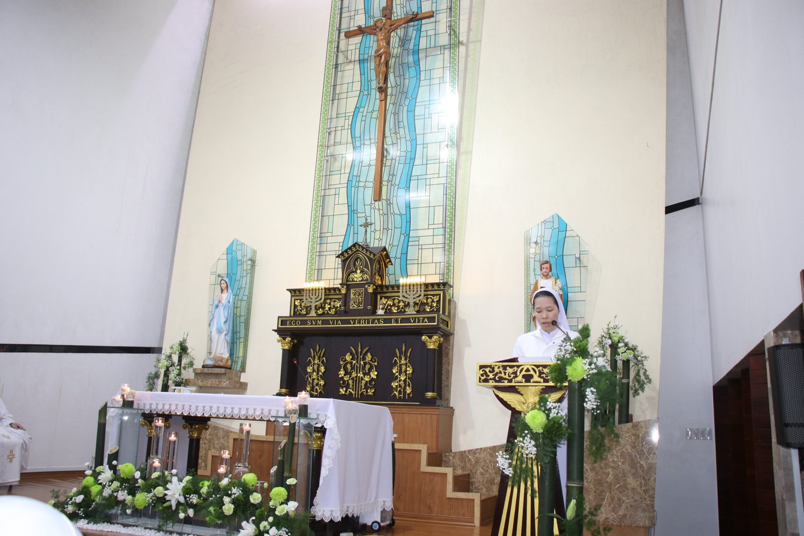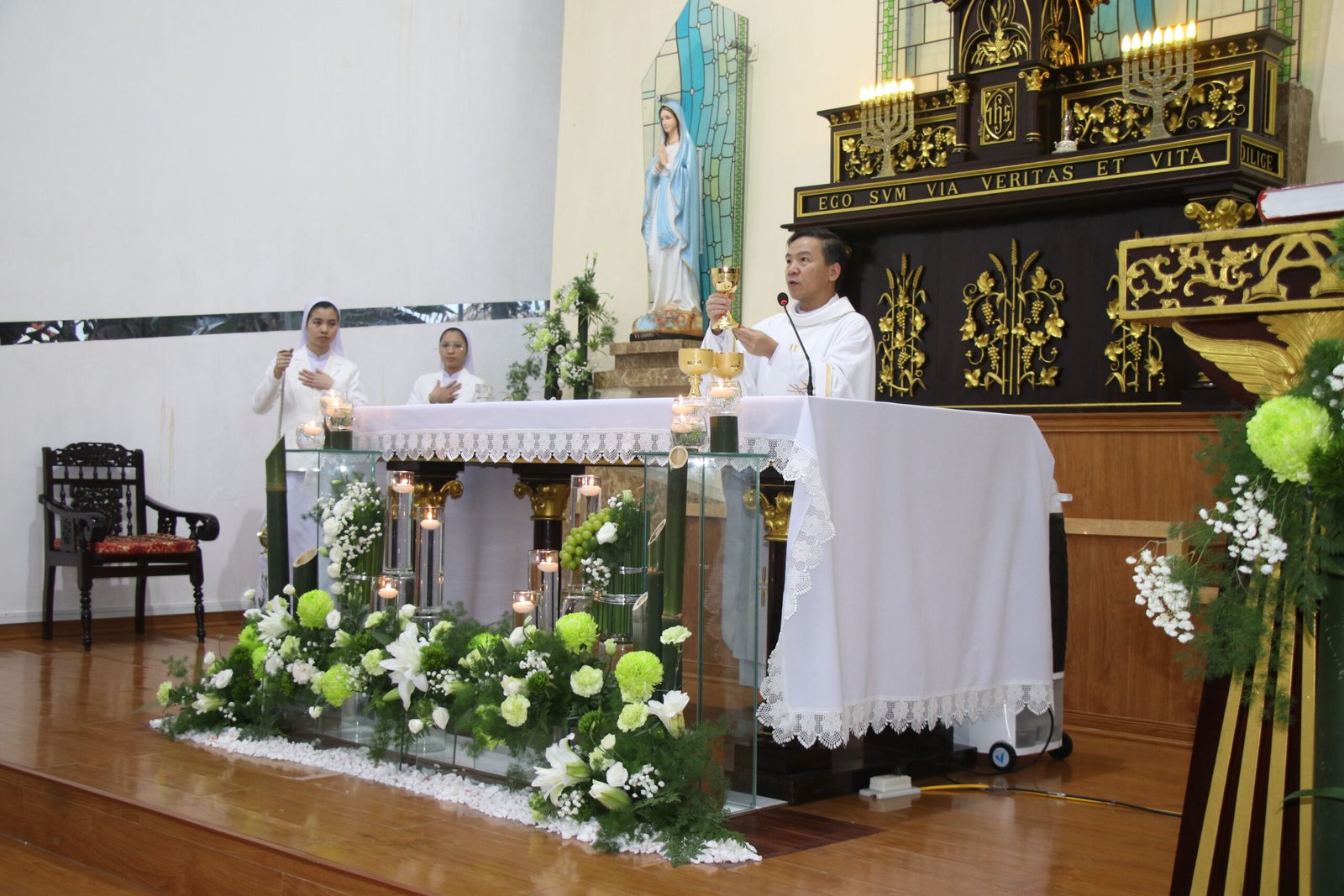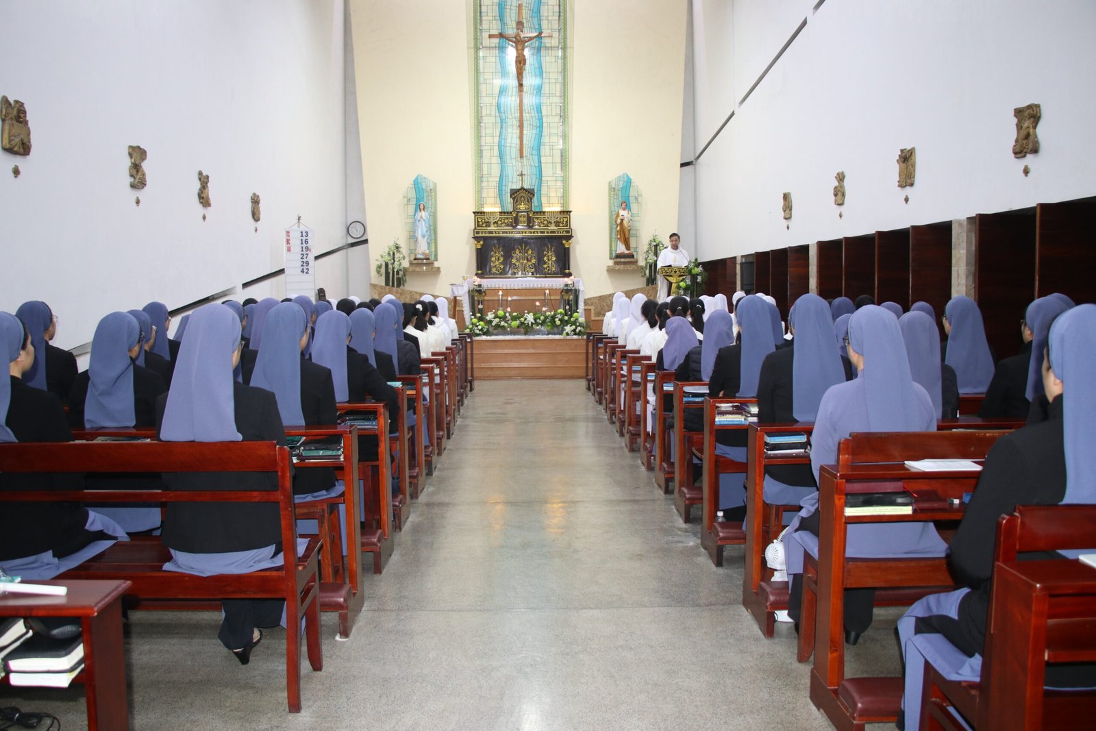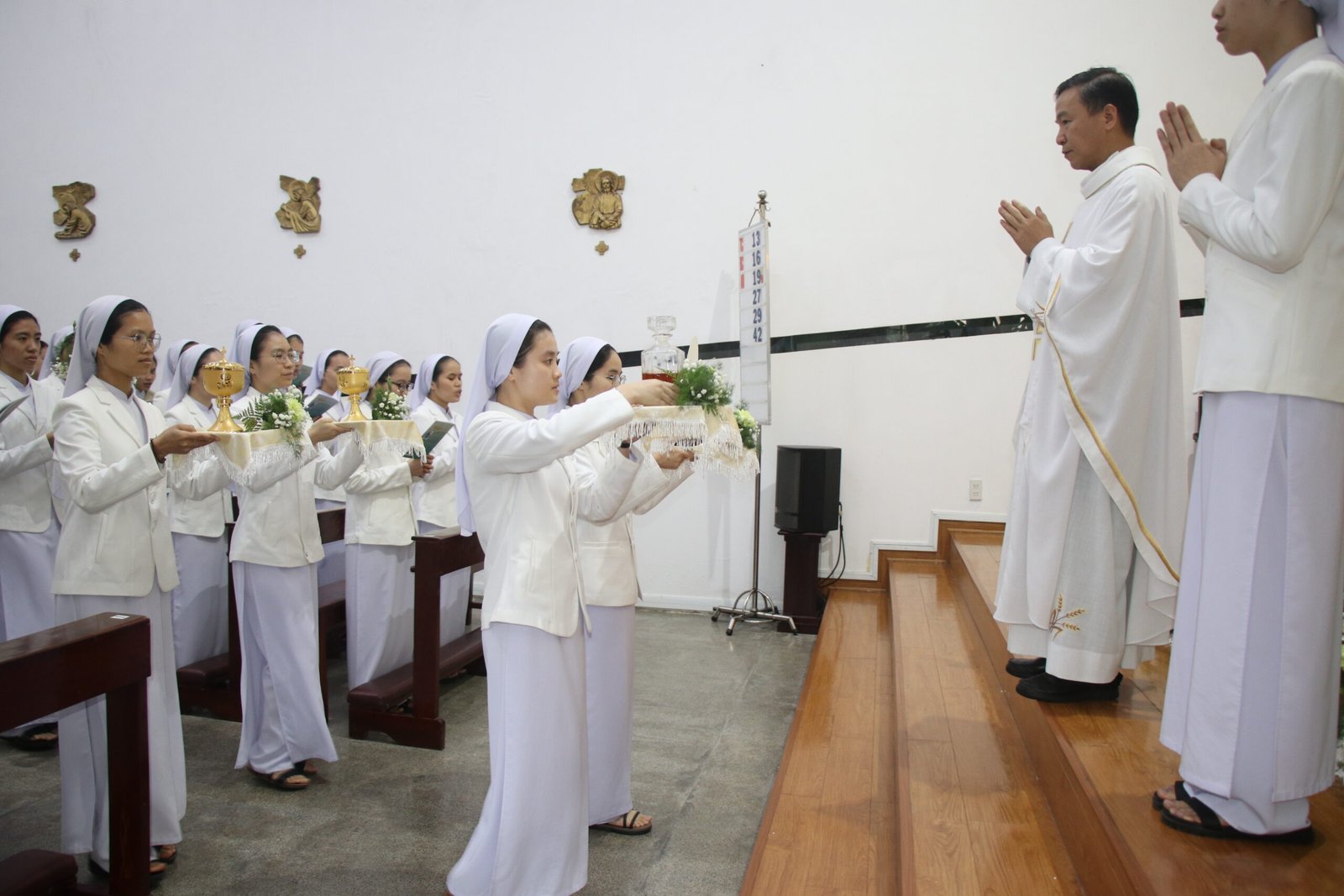 Thánh lễ do Cha Gia-cô-bê Nguyễn Xuân Lành chủ tế, với sự hiện diện của Chị Tổng Phụ trách, quý chị trong Ban Tổng cố vấn cùng quý chị sở, và toàn thể Hội dòng hướng về các em trong lời cầu nguyện. Bầu khí thánh thiêng và tình gia đình như củng cố và tiếp thêm lửa mến cho các Tập sinh trong hành trình dâng hiến của mình.