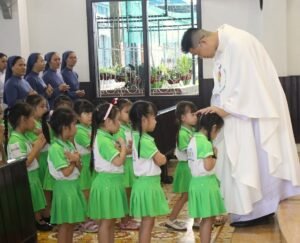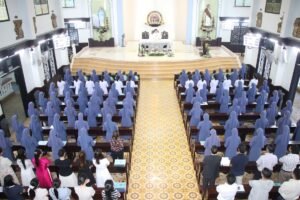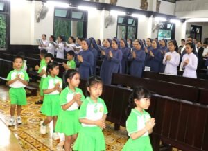 Sáng 02/10, trong niềm vui mừng Bổn mạng của Trường Mầm non Bích Trúc, cộng đoàn Nhà Mẹ đã hân hoan đón tiếp phụ huynh và các cháu đại diện cho tập thể phụ huynh và các cháu trong Trường đến hiệp dâng Thánh lễ và chung chia niềm vui mừng Bổn mạng – Các Thiên Thần Hộ Thủ. Trong niềm vui và trong sự nối kết, Thánh lễ được diễn ra cách trang nghiêm và sốt sắng.