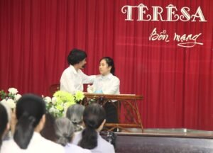 Quay lại câu chuyện đời Chị Têrêxa, tôi lại phải kìm cảm xúc khi cô bé Têrêxa 15 tuổi gặp những khó khăn do đời sống trong Dòng. Khó khăn là vậy nhưng Chị đã vượt qua tất cả, trong tươi vui và tín thác nơi Chúa, chỉ vì tình yêu Chúa. Chị Têrêxa trên sân khấu đã làm cho tôi, và tôi tin cả hội trường lặng trầm trong khoảnh khắc Chị đón nhận cơn đau vì bệnh lao trở nặng. Cơn đau thật khủng khiếp, ánh mắt, thân xác chị nói lên điều đó, nhưng lòng chị thật nhẹ nhàng, bình an, và tràn đầy hy vọng, một lòng hướng về Chúa. Điều ấy chỉ có thể có được khi Chị dư tràn tình yêu, sự tín thác và phó thác nơi Chúa của Chị. Tình yêu ấy không chỉ mang lại hạnh phúc đích thực cho riêng Chị, nhưng có sức cứu rỗi các tâm hồn. Chính Tình yêu và niềm Hy vọng mang lại sức cứu rỗi ấy đã đưa chị lên bậc hiển thánh, là Tiến sĩ Hội Thánh với Linh đạo thơ ấu thiêng liêng, và là bổn mạng các xứ truyền giáo khi Chị chỉ sống trong bốn bức tường tu viện.