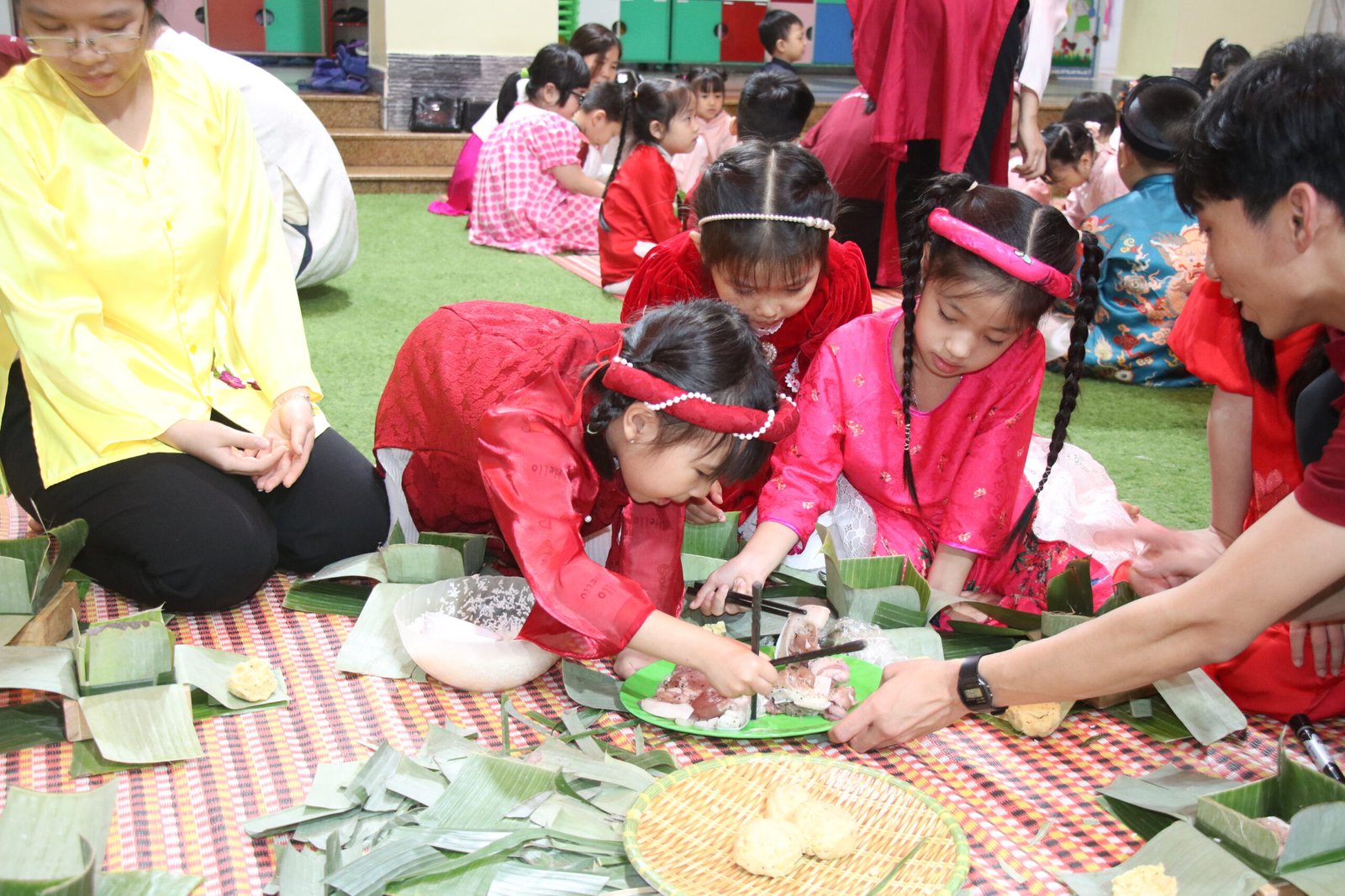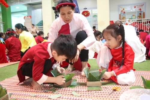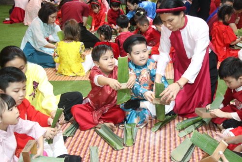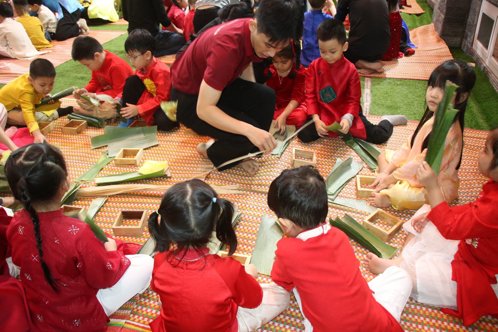 Đây là dịp để các cháu tìm hiểu thêm về truyền thống của những ngày Tết Dân Tộc, đặc biệt với sự hướng dẫn của các thầy cô ở Trung tâm Delta và sự giúp đỡ của quý cô giáo trong Trường, các bạn đã sử dụng đôi tay khéo léo của mình để gói nên những chiếc bánh chưng xinh xắn.