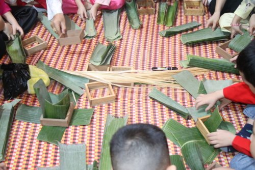 Ngày khởi động đầu tiên dành cho các bạn khối Lá với trải nghiệm làm bánh chưng.