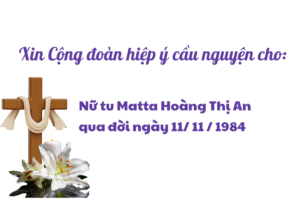 Ai Tín Nữ Tu Anna Trần Thị Ngân – Hội Dòng Mến Thánh Giá Huế Hành trình phục vụ: – Từ năm 1965 đến năm 1967, chị phục vụ tại Giáo xứ Mỹ Lộc. – Từ năm 1967 đến năm 1975, Chị lần lượt phục…